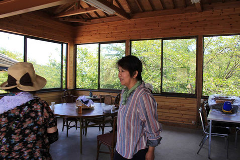 ブルーベリー狩りを楽しんだあとは、摘み取った果実をパック詰めしたり、お茶を飲みながらお喋りしたり。
